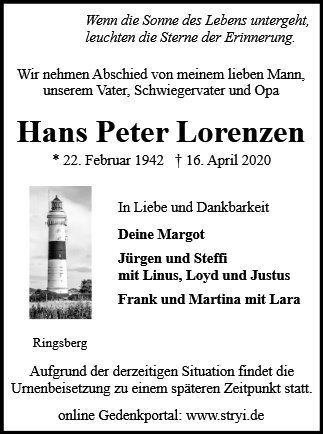 Die Nachricht von Hans Peters (Lupo) Tod